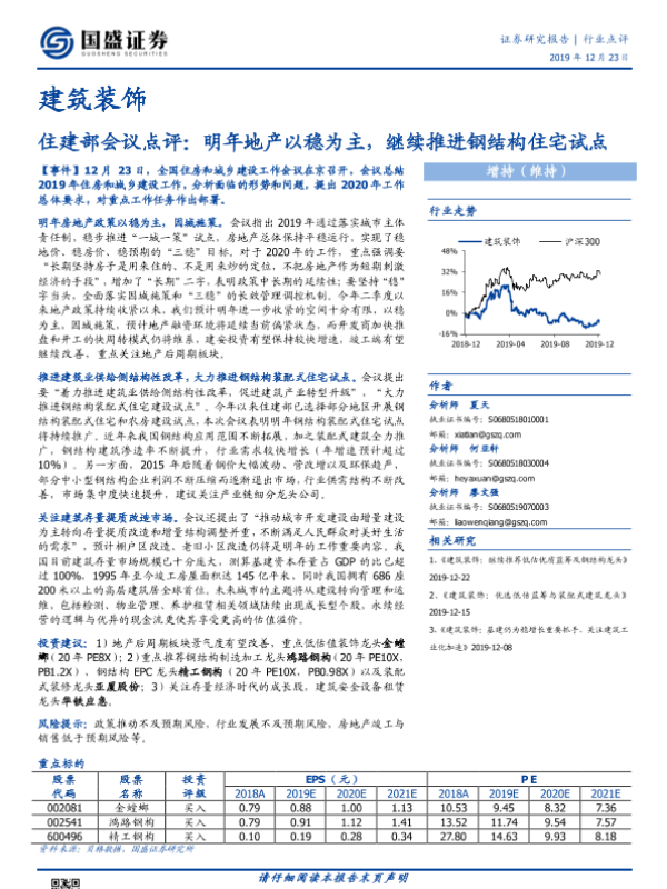 【国盛证券】【20191223】住建部会议点评:明年地产以稳为主,继续推进钢结构住宅试点-2页 行业研究