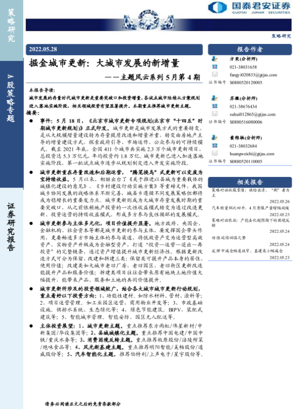 【国泰君安证券】【20220528】掘金城市更新:大城市发展的新增量-16页 行业研究