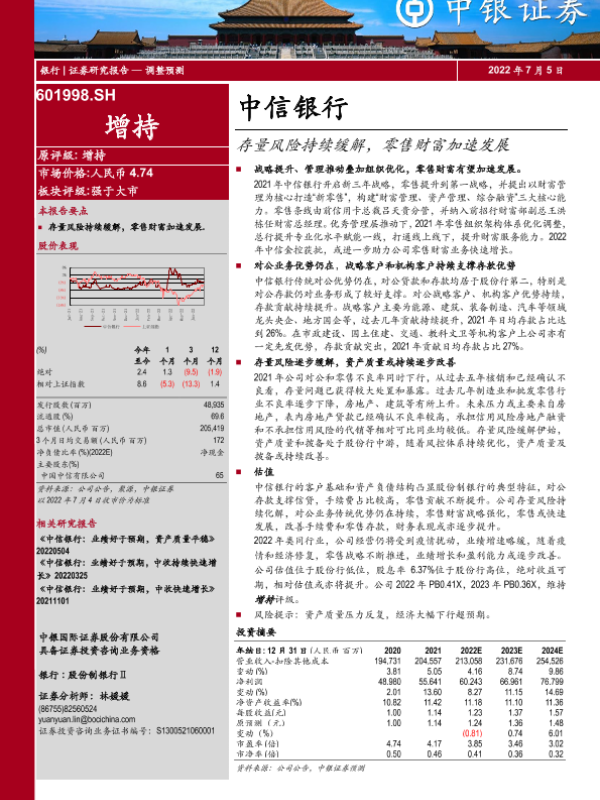 【中银证券】【20220705】20220705-中银证券-中信银行-601998.SH-存量风险持续缓解,零售财富加速发展-35页 行业研究