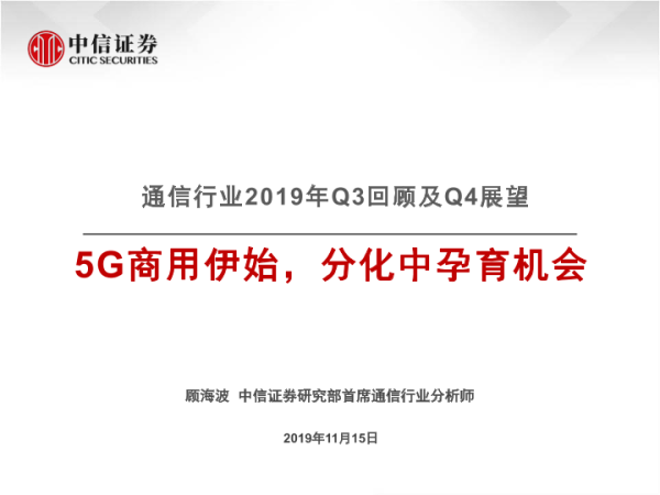【中信证券】【20191115】通信行业2019年Q3回顾及Q4展望:5G商用伊始,分化中孕育机会-31页 行业研究