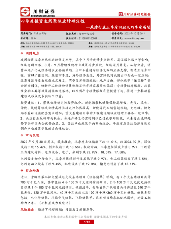 【川财证券】【20221005】基建行业三季度回顾及四季度展望:四季度投资主线聚焦业绩确定性-12页 行业研究