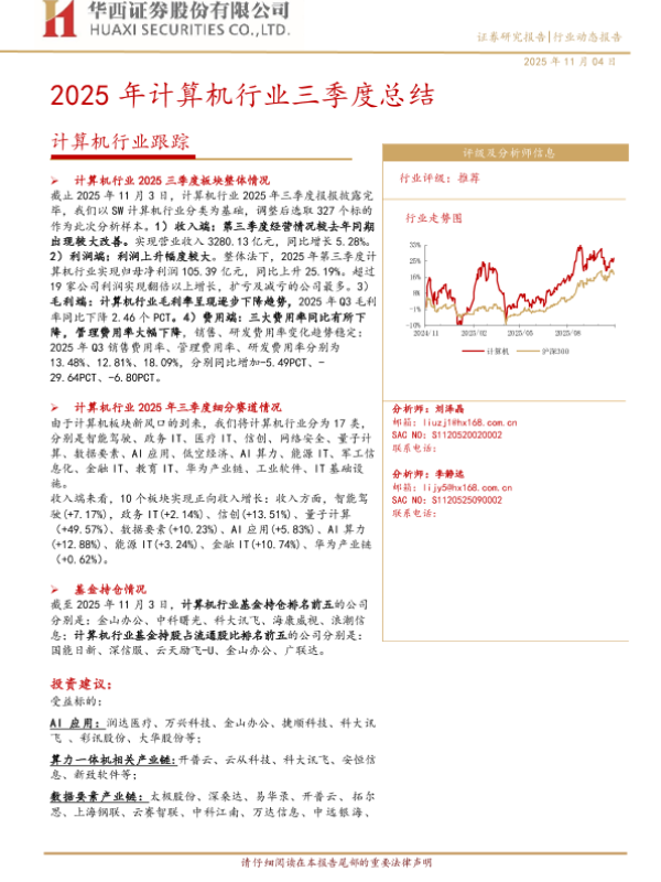 【华西证券】【202511】2025年计算机行业三季度总结-22页 证券期货研究报告