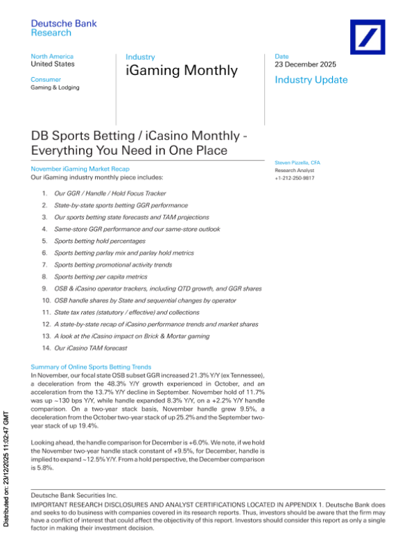 【Deutsche Bank】【202512】iGaming Monthly DB Sports Betting iCasino Monthly - Every...-19406345.pdf-63页 行业研究