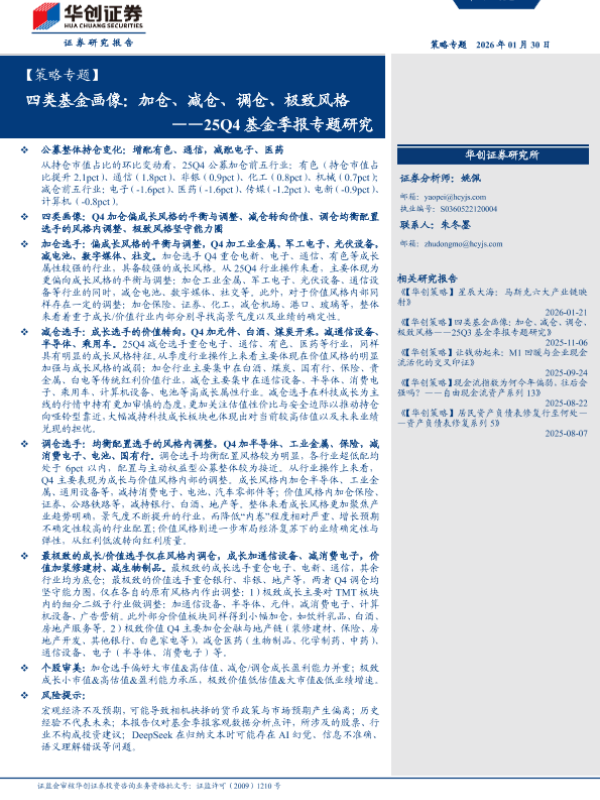 【华创证券】【202601】四类基金画像:加仓、减仓、调仓、极致风格 ——25Q4基金季报专题研究-39页 证券期货研究报告