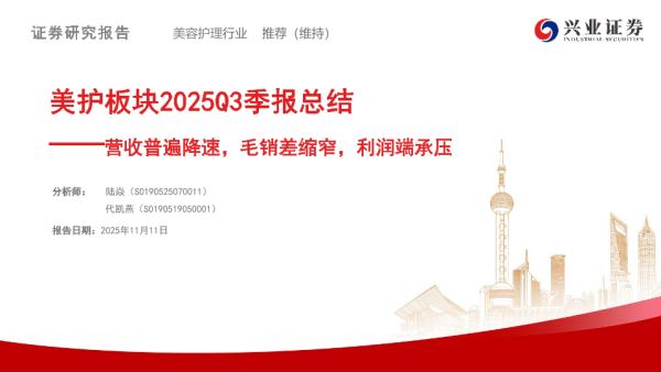 【兴业证券】【202511】美护板块2025Q3季报总结:营收普遍降速,毛销差缩窄,利润端承压-10页 证券期货研究报告