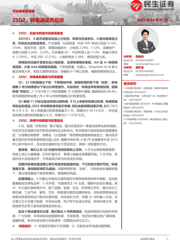 【民生证券】【20250407】可转债季度策略:25Q2,转债谋定而后动-23页 证券期货研究报告