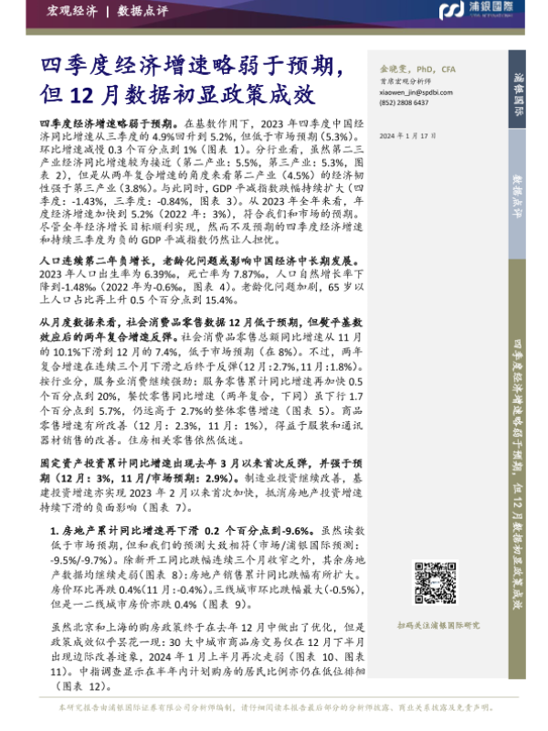 【浦银国际】【20240117】四季度经济增速略弱于预期,但12月数据初显政策成效-10页 行业研究