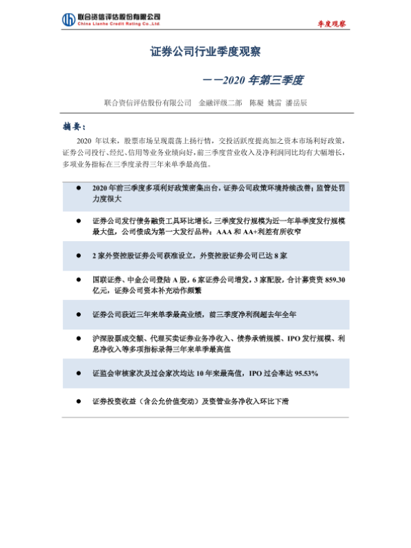 【联合资信】【20201125】证券公司行业季度观察 - 2020年第三季度-13页 行业研究