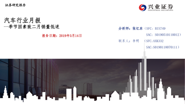 【兴业证券】【20190314】汽车行业月报:季节因素致二月销量低迷-25页 行业研究