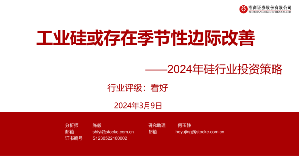 【浙商证券】【20240309】2024年硅行业投资策略:工业硅或存在季节性边际改善-23页 行业研究