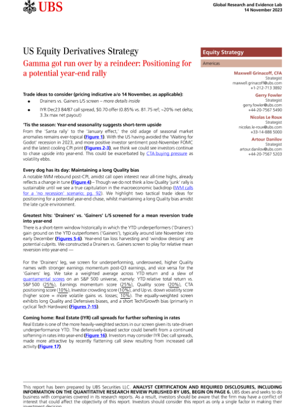 【UBS Securities LLC】【20231114】US Equity Derivatives Strategy Gamma got run over by a reindeer Positioning for a potential year-end rally-10页 行业研究