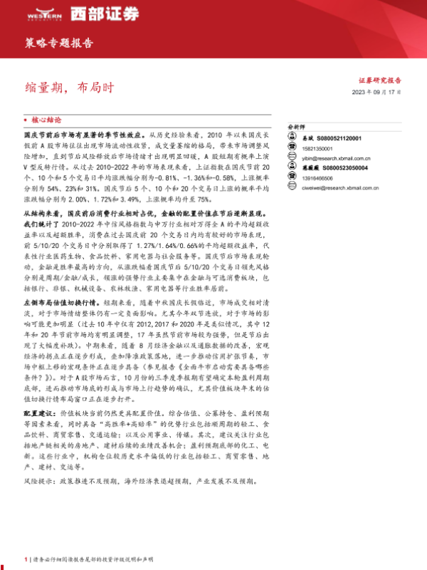 【西部证券】【20230917】策略专题报告:缩量期,布局时-16页 行业研究