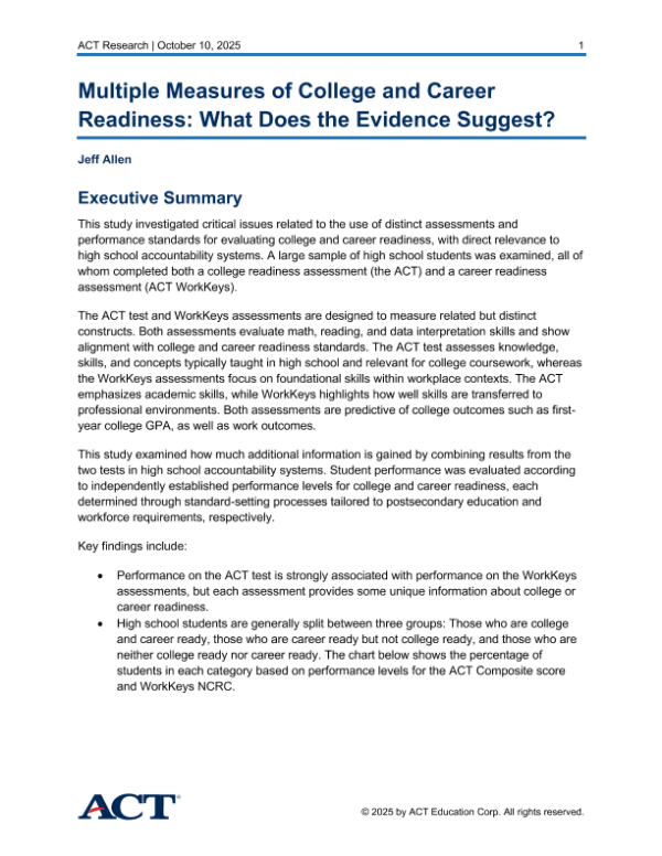 【ACT Education Cor p .】【202510】Multiple Measures of College and Career Readiness What Does the Evidence Suggest?-29页 行业研究