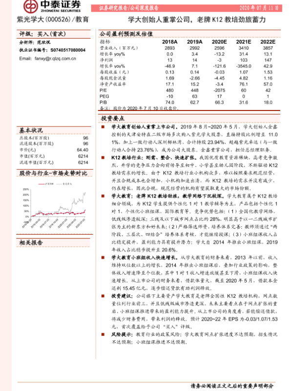 【中泰证券】【20200711】紫光学大-000526.SZ-学大创始人重掌公司,老牌K12教培劲旅蓄力-20页 行业研究
