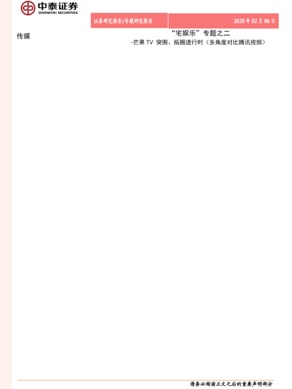 【中泰证券】【20200206】“宅娱乐”专题之二-芒果TV突围、拓圈进行时(多角度对比腾讯视频)-13页 行业研究