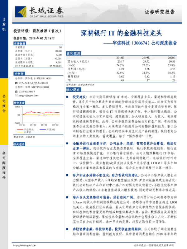 【长城证券】【20190218】20190218-长城证券-宇信科技-300674.SZ-深耕银行IT的金融科技龙头-37页 行业研究
