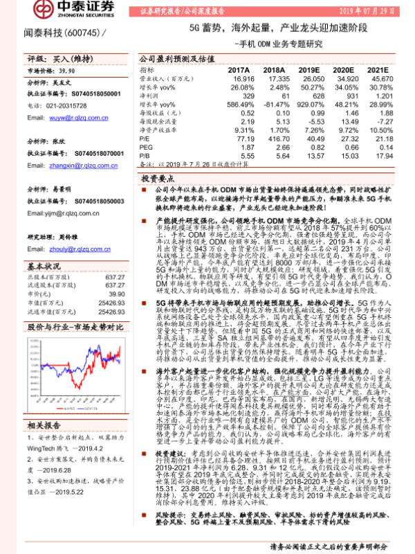 【中泰证券】【20190729】20190729-中泰证券-闻泰科技-600745.SH-手机ODM业务专题研究:5G蓄势,海外起量,产业龙头迎加速阶段-31页 行业研究