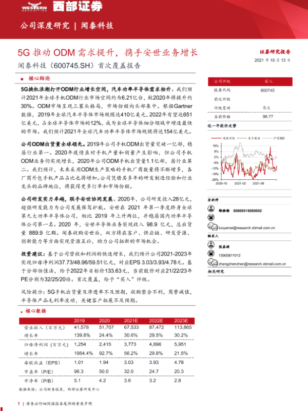 【西部证券】【20211013】闻泰科技:5G推动ODM需求提升,携手安世业务增长-30页 行业研究