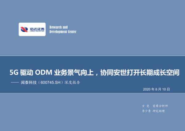【信达证券】【20200810】2020.08.10-闻泰科技:5G驱动ODM业务景气向上,协同安世打开长期成长空间-56页 行业研究