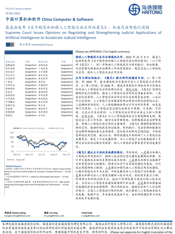 【海通国际】【20221219】最高法发布《关于规范和加强人工智能司法应用的意见》,加速司法智能化进程-10页 政策文件