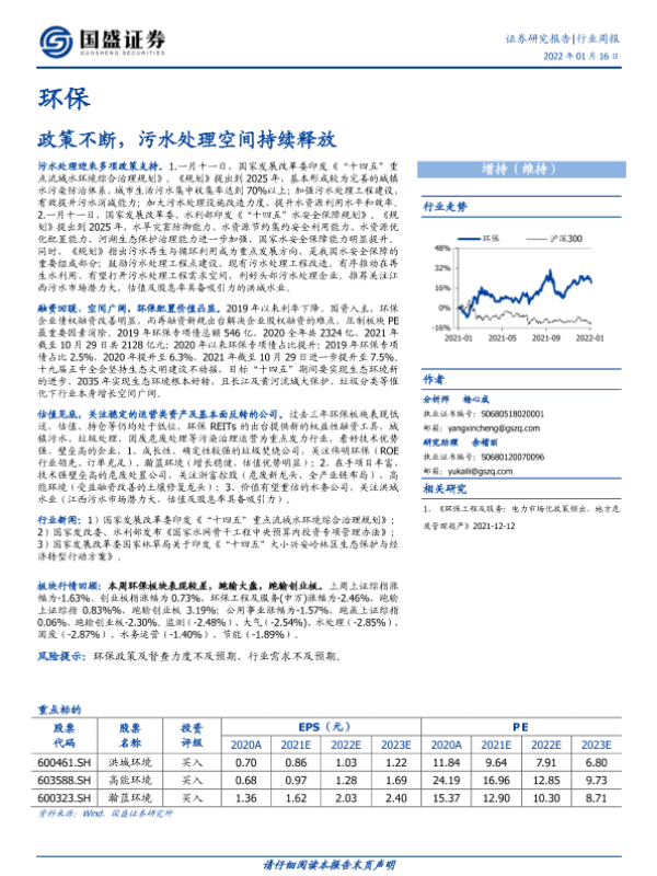 【国盛证券】【20220116】环保行业周报:政策不断,污水处理空间持续释放-13页 行业研究
