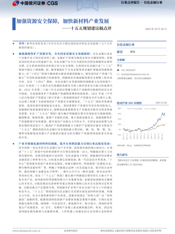 【银河证券】【202510】加强资源安全保障,加快新材料产业发展——十五五规划建议稿点评-3页 证券期货研究报告