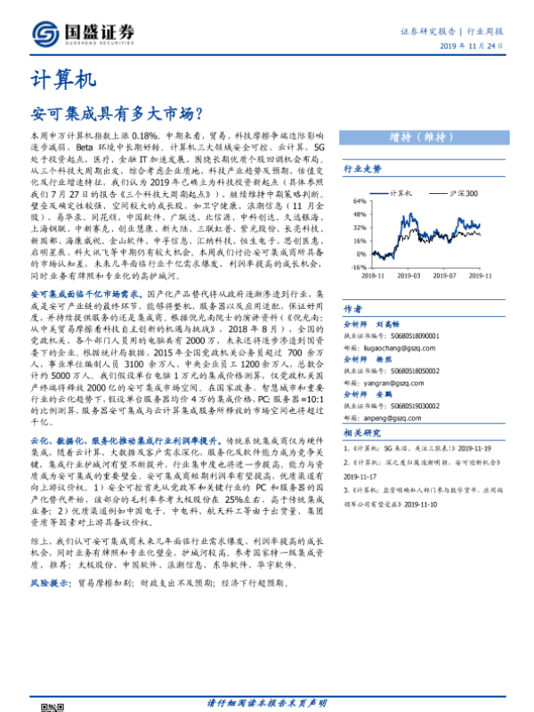 【国盛证券】【20191124】计算机行业周报:安可集成具有多大市场?-8页 行业研究