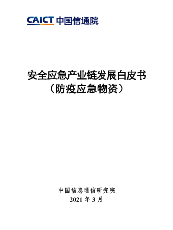 【中国信息通信研究院】【202103】安全应急产业链发展白皮书(防疫应急物资)-48页 白皮书