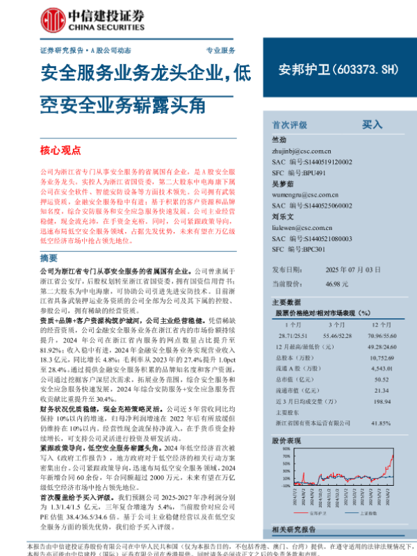 【中信建投证券】【20250703】安邦护卫安全服务业务龙头企业,低空安全业务崭露头角-15页 公司研究