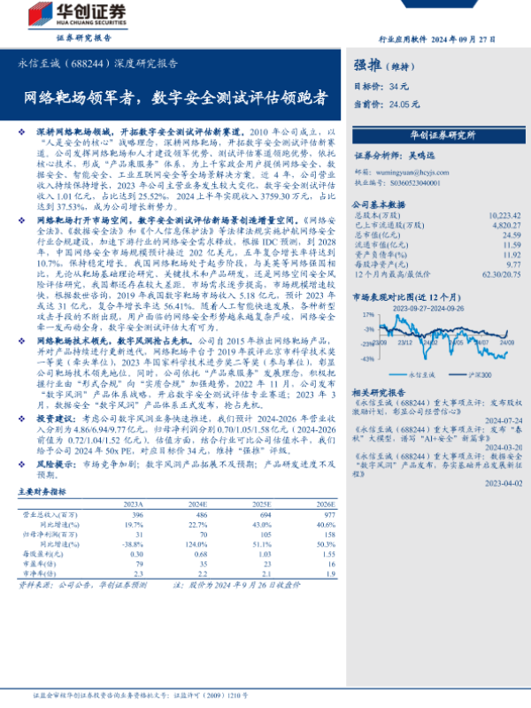 【华创证券】【20240927】永信至诚(688244)深度研究报告:网络靶场领军者,数字安全测试评估领跑者-23页 行业研究