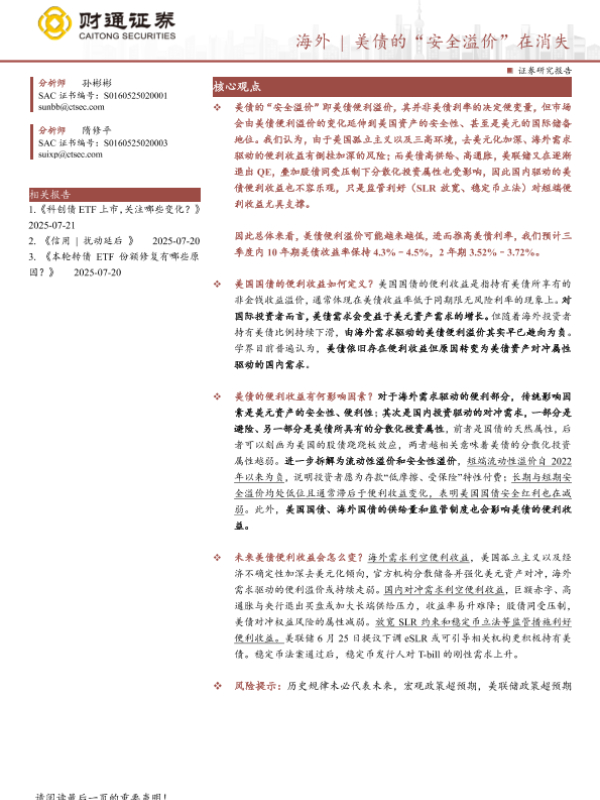 【财通证券】【20250722】美债的“安全溢价”在消失-17页 证券期货研究报告