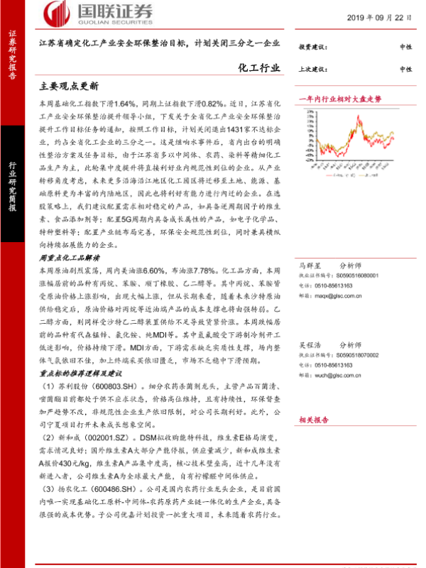 【国联证券】【20190922】江苏省确定化工产业安全环保整治目标,计划关闭三分之一企业-17页 行业研究