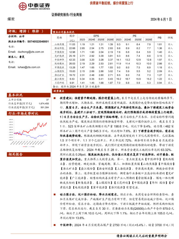 【中泰证券】【20240601】20240601-中泰证券-煤炭行业周报:供需紧平衡延续,煤价将震荡上行-28页 行业研究