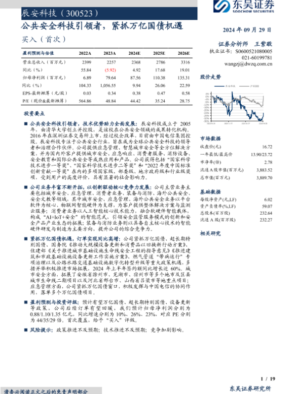 【东吴证券】【20240929】辰安科技(300523)公共安全科技引领者,紧抓万亿国债机遇-19页 行业研究