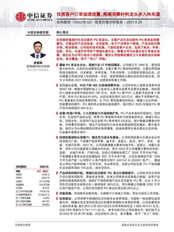 【中信证券】【20210820】20210820-中信证券-安利股份-300218.SZ-投资价值分析报告:优质客户订单加速放量,高端消费材料龙头步入快车道-25页 行业研究