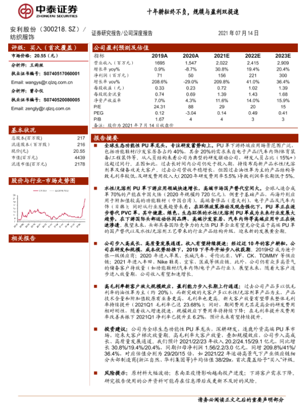 【天风证券】【20220326】安利股份-PU合成革领军企业,提早布局绿色生态材料抢占市场先机-28页 行业研究