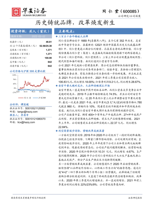 【华安证券】【20220302】历史铸就品牌,改革焕发新生-20页 行业研究