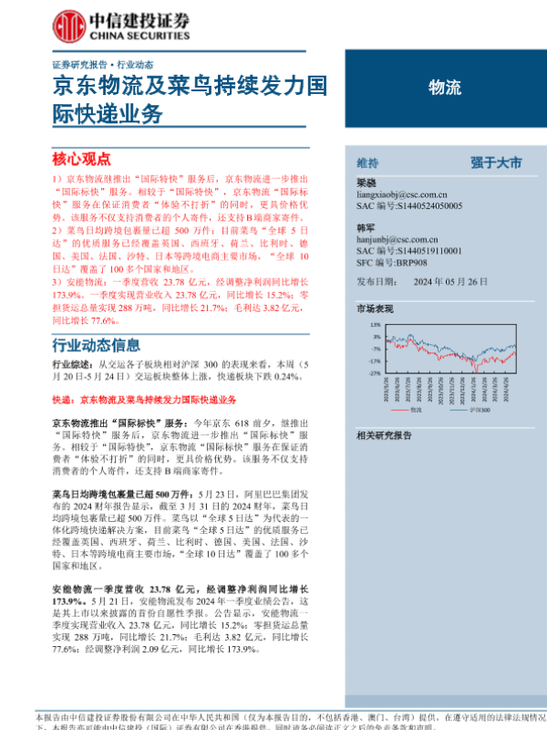 【中信建投证券】【20240526】物流行业:京东物流及菜鸟持续发力国际快递业务-21页 行业研究