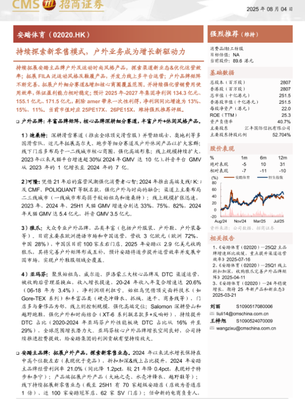 【海通证券】【202508】安踏体育(2020.HK)持续探索新零售模式,户外业务成为增长新驱动力-28页 证券期货研究报告