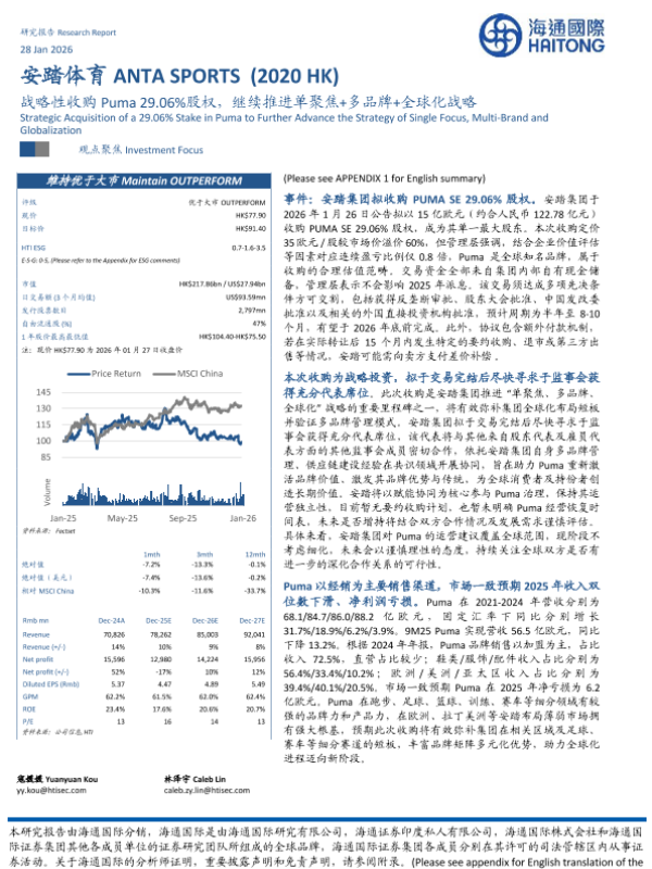 【海通国际】【202601】战略性收购 Puma 29.06%股权,继续推进单聚焦+多品牌+全球化战略-13页 证券期货研究报告