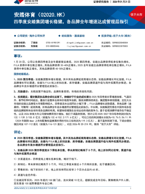 【海通国际】【202601】4Q25营运表现点评:FILA稳健增长,2026展望谨慎运动大年将加大投入-12页 证券期货研究报告