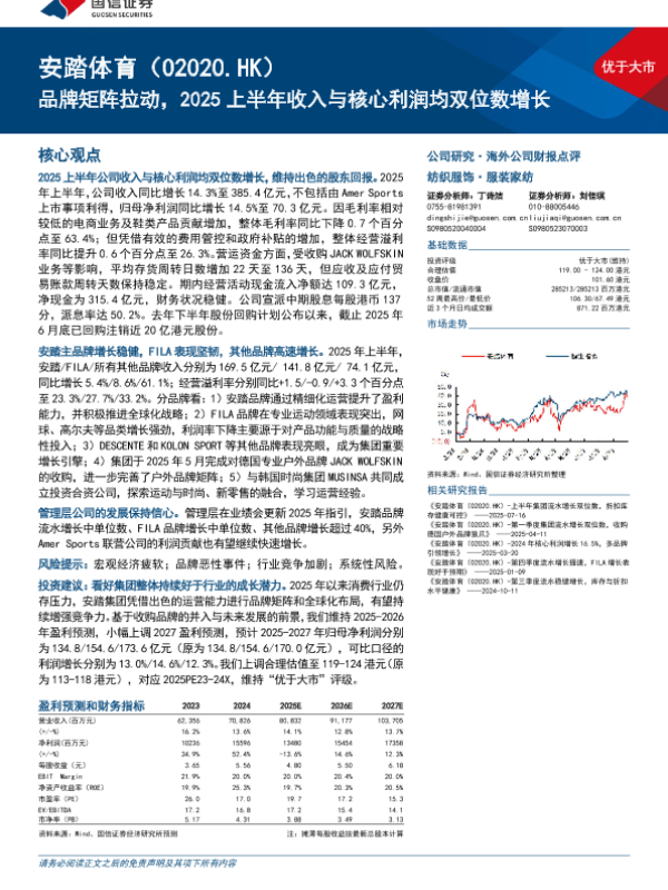 【国信证券】【202508】安踏体育(02020.HK)品牌矩阵拉动,2025上半年收入与核心利润均双位数增长-11页 证券期货研究报告