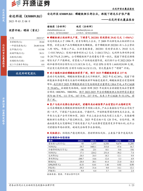 【开源证券】【20230308】北交所首次覆盖报告_磷酸铁锂头部企业_跟随下游龙头扩张产能-25页 行业研究