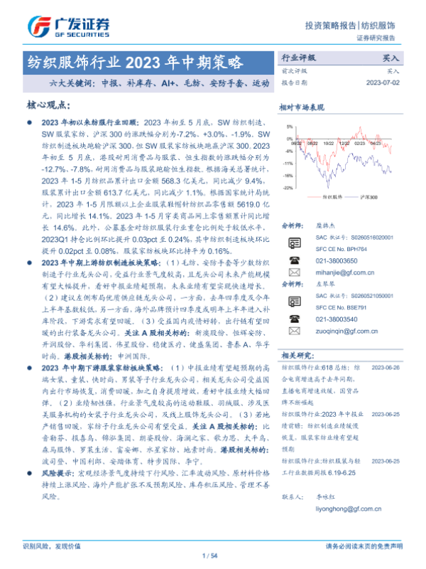 【广发证券】【20230702】纺织服饰行业2023年中期策略-54页 行业研究