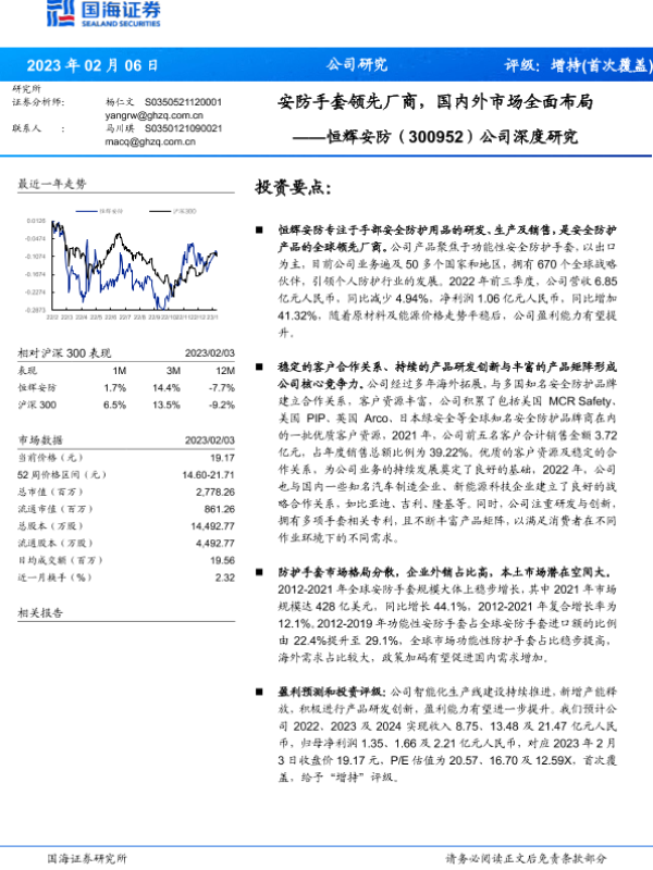 【国海证券】【20230206】公司深度研究:安防手套领先厂商,国内外市场全面布局-22页 公司研究