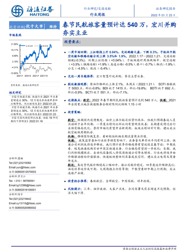 【海通证券】【20220123】春节民航旅客量预计达540万,宏川并购夯实主业-10页 行业研究