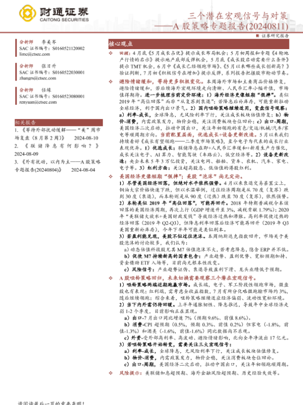 【财通证券】【20240811】A股策略专题报告:三个潜在宏观信号与对策-10页 行业研究