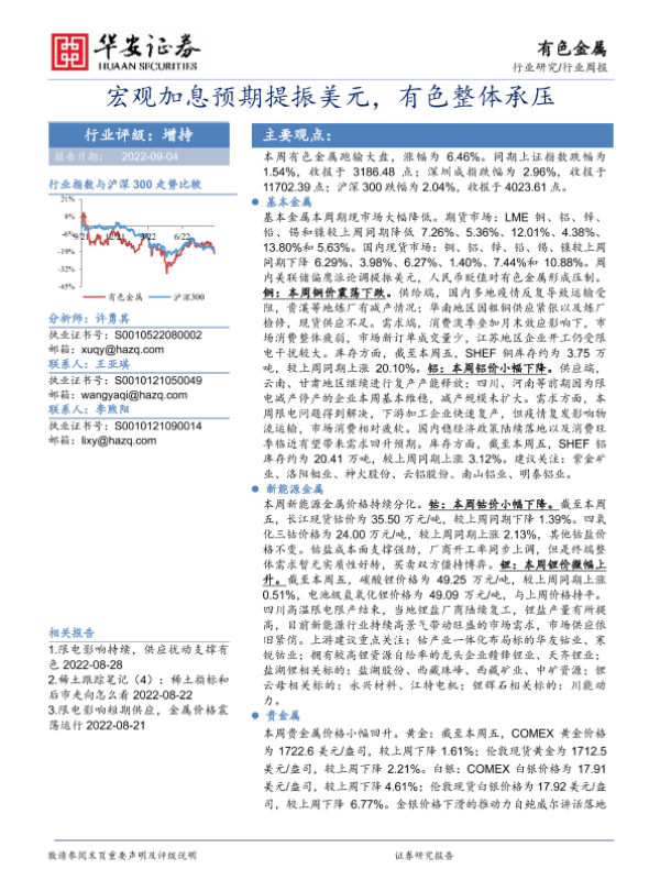 【华安证券】【20220904】20220904-华安证券-有色金属行业周报:宏观加息预期提振美元,有色整体承压-17页 行业研究
