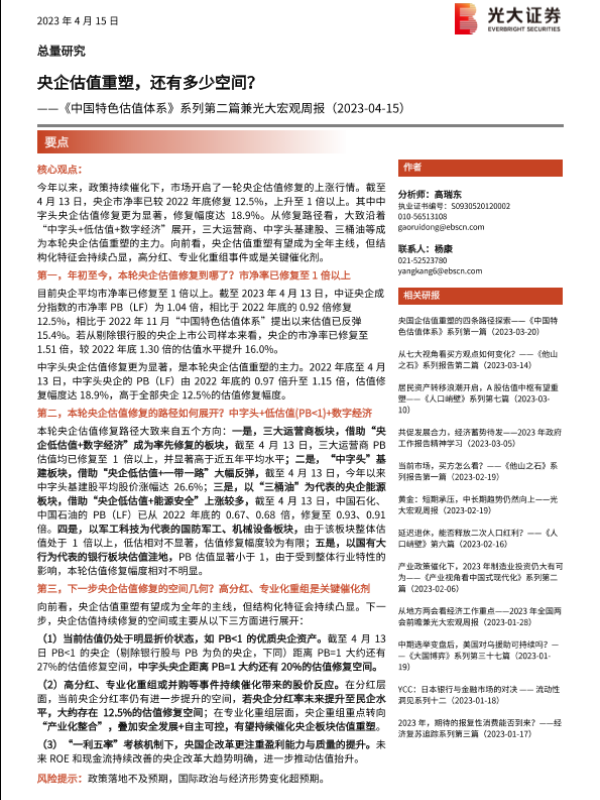【光大证券】【20230415】《中国特色估值体系》系列第二篇兼光大宏观周报:央企估值重塑,还有多少空间?-19页 行业研究