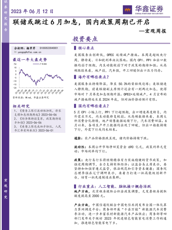 【华鑫证券】【20230612】宏观周报:联储或跳过6月加息,国内政策周期已开启-22页 行业研究